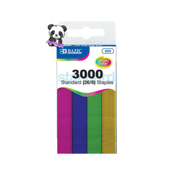 3000 Assorted Coloured Staples for Standard Staplers. Consists of Blue, Pink, Green and Gold.