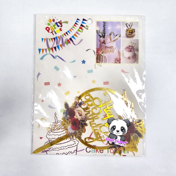 Happy Birthday Gold floral cake topper